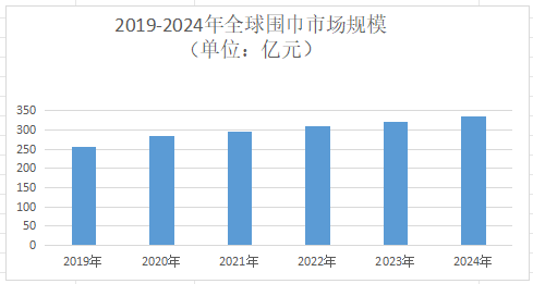 中国围巾市场作为全球重要的市场之一,近年来呈现出快速发展的态势。2023年,中国围巾整体市场规模已突破320亿元。到2024年,全国围巾及相关配饰产品的市场规模已达到约386亿元,较2023年同比增长6.2%。这一增长主要得益于消费结构升级、时尚意识提升以及冬季服饰需求的季节性拉动。