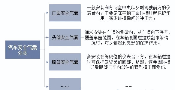 技术创新成为安全气囊市场升级的核心动力,智能系统普及与材料革新重塑产品价值。全球安全气囊市场呈现高度集中的竞争态势,同时本土企业与新兴技术力量正在打破现有格局。按碰撞类型划分,汽车安全气囊可以分为正面碰撞防护安全气囊、侧面碰撞防护安全气囊、顶部碰撞防护安全气囊等;根据人体位置划分,则可细分为头部安全气囊、膝部安全气囊、腿部安全气囊等。