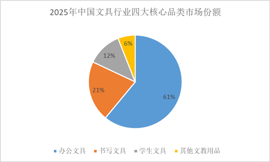 产品品类与场景持续扩张:当前文具行业分为四大品类,办公文具占比 61%(如文件夹、订书机)、书写文具占比 21%(如中性笔、钢笔)、学生文具占比 12%(如文具盒、书包)、其他文教用品占比 6%(如计算器、台灯)。企业还不断拓展场景,推出专业绘画工具、高颜值收纳产品及融合香氛、照明功能的氛围感文具,进一步丰富文具产品矩阵。