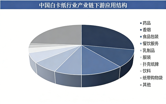 白卡纸应用领域广泛且需求结构相对稳定,其中药品包装是最大需求领域,2025 年占比达 28%,远超其他应用场景;其次是香烟包装与食品包装,两者占比相同,均为 11%;餐饮服务、乳制品、服装、扑克纸牌、饮料、纸带购物袋及其他领域则占据剩余市场份额。从需求变化趋势来看,药品包装需求受人口老龄化程度加深影响,未来有望持续增长,而食品包装需求虽受消费信心与替代材料轻微冲击,但仍维持较大规模,香烟包装需求则保持相对稳定。不同下游领域的需求特点,决定了白卡纸行业需针对细分市场优化产品结构,以满足多样化的应用需求,同时也为行业提供了稳定的需求支撑。
