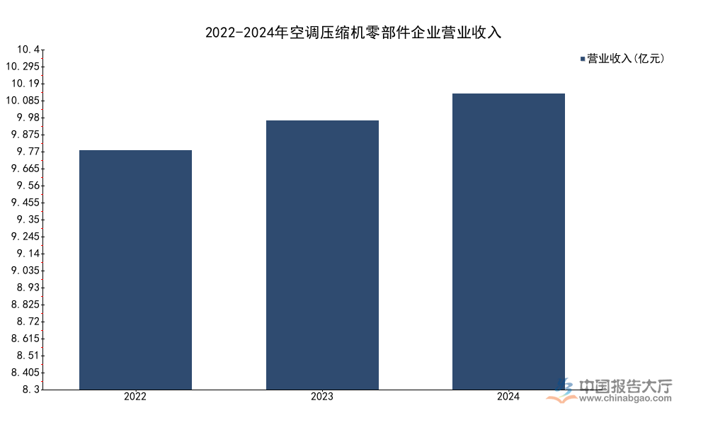 价格走势的连续上涨,反映出大宗商品市场对铜供需缺口的一致判断,对空调行业而言,成本端压力将在较长一段时间内持续存在,中小品牌的盈利空间被进一步压缩,部分缺乏核心竞争力的中小品牌已经逐步退出市场,头部企业的份额持续提升。进一步拆解核心零部件领域,空调压缩机零部件作为细分赛道,诞生了一批专注领域的专精特新企业,行业增长受益于国内空调整机产业的规模扩张,出口需求增长也带动零部件企业订单提升,专注细分赛道的零部件企业凭借技术壁垒维持稳定的盈利水平,不同年份的营收变化可以反映行业的增长趋势。