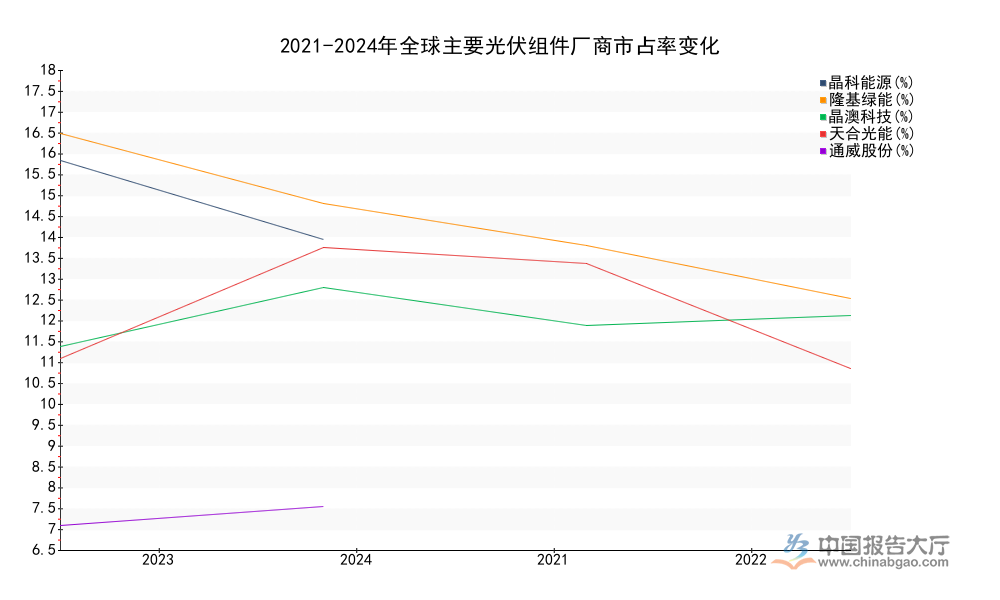 表4 2021-2024年全球主要光伏组件厂商市占率(单位:%)