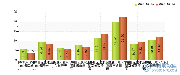 宇博智业监测数据显示,2025年10月16日山东省诸城市地区的有机水溶肥价格涨幅最大,涨幅为54.74%,报5.71元/斤(2025年10月14日价格报3.69元/斤)。湖南省双清区地区的中量元素水溶肥价格跌幅最大,跌幅为13.83%,报11.71元/斤(2025年10月14日价格报13.59元/斤)。