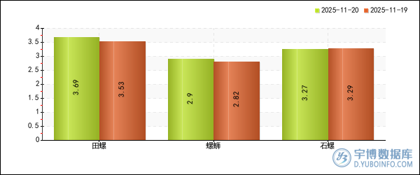 淡水螺产品报价预警:浙江省上虞区石螺价格8周上涨17.68%(2025年11月25日)