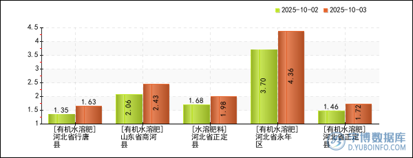 水溶肥产品报价预警:河北省行唐县有机水溶肥价格8周上涨20.74%(2025年10月03日)