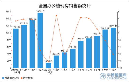 2025年1-10月全国商业营业用房现房销售额统计分析