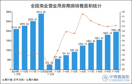 2025年1-10月全国商业营业用房期房销售面积统计分析
