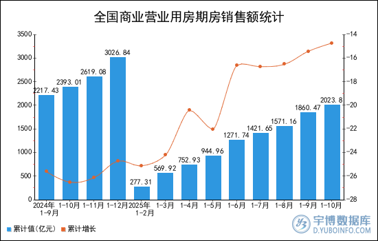 2025年1-10月全国商业营业用房期房销售额统计分析
